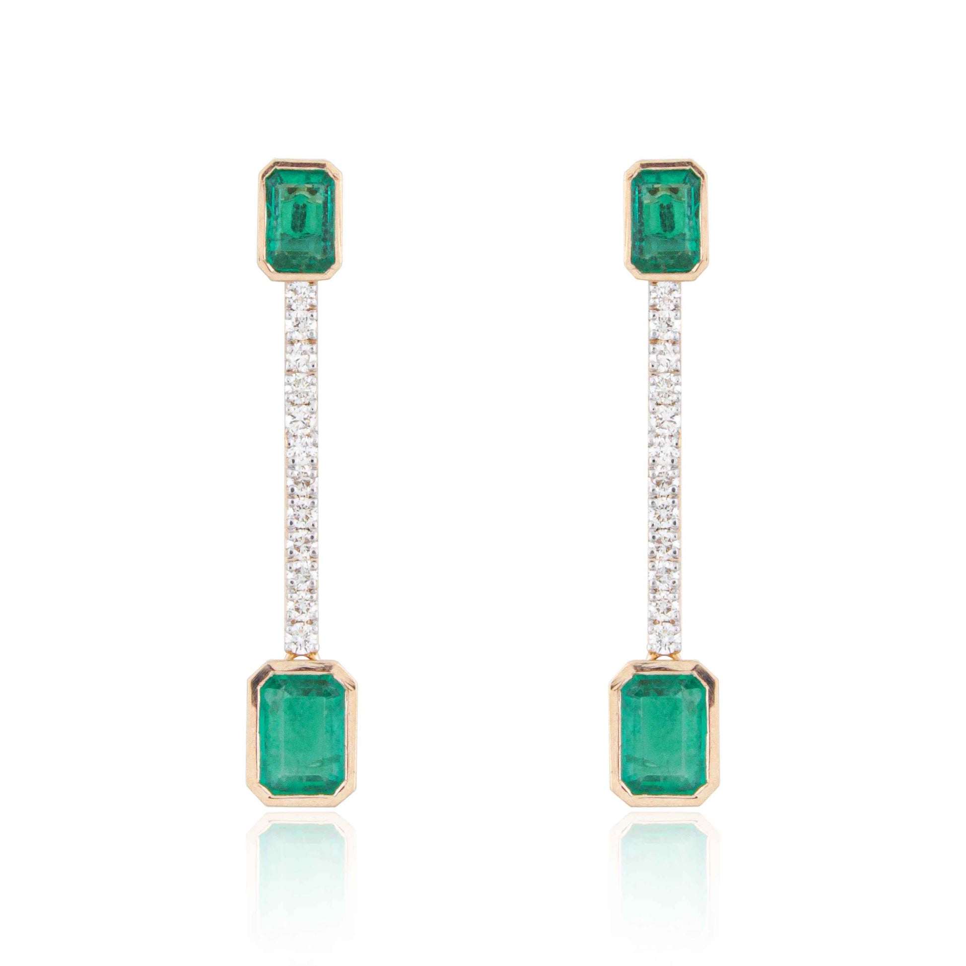 Emerald and Diamond Linear Drop Earrings